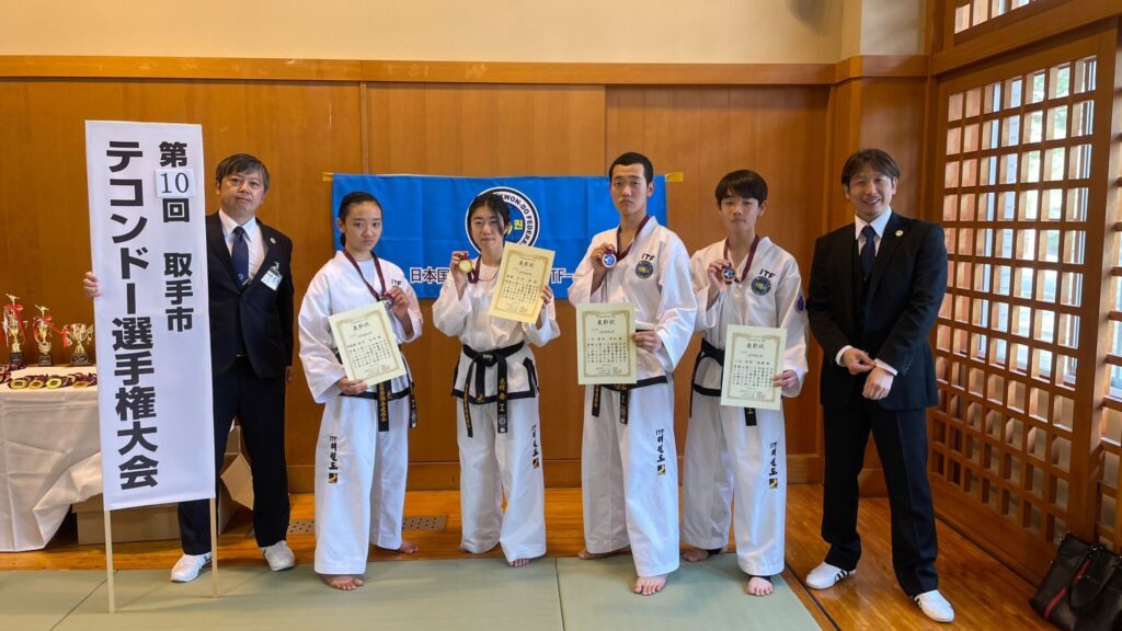 大会取手市大会 第10回取手市テコンドー大会結果<2023年4月2日> 2023年4月2日 demo 2023年4月2日(日)第10回取手市テコンドー大会(取手グリーンスポーツセンター)皆さんのお力添えの下、無事大会が終了いたしましたことをご報告させて頂きます。誠に有難うございました。 大会集合写真 ※番外編写真はブログに掲載!テコンドー道場長ブログ 開会式 成年部 最優秀選手 少年部 最優秀選手賞 成年部 優秀選手賞 少年部 優秀選手賞 成年部 敢闘賞 少年部 敢闘賞